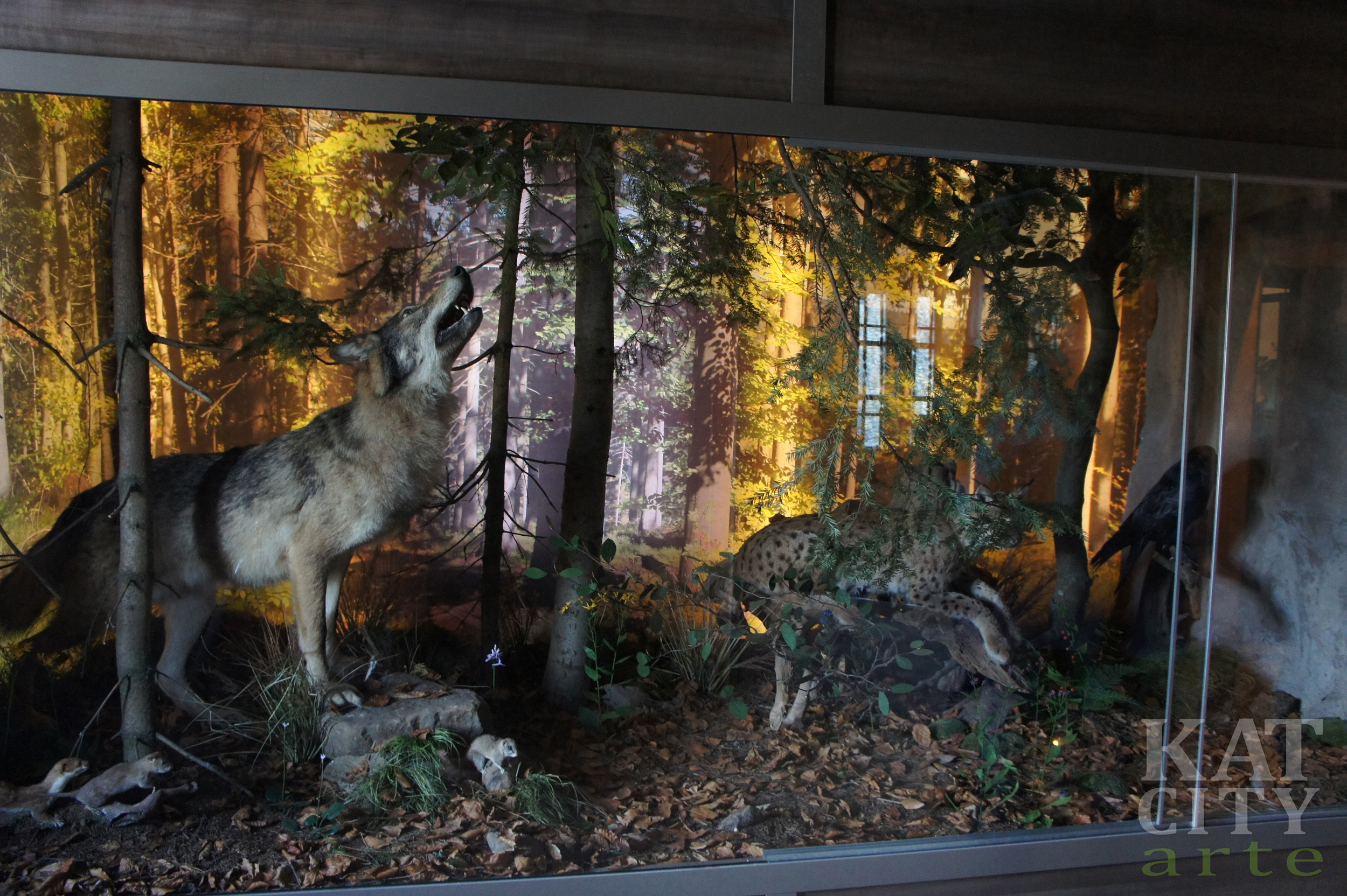 Dwie duże przeszklone dioramy prezentują florę i faunę występującą w rezerwatach na terenie Nadleśnictwa Wisła.