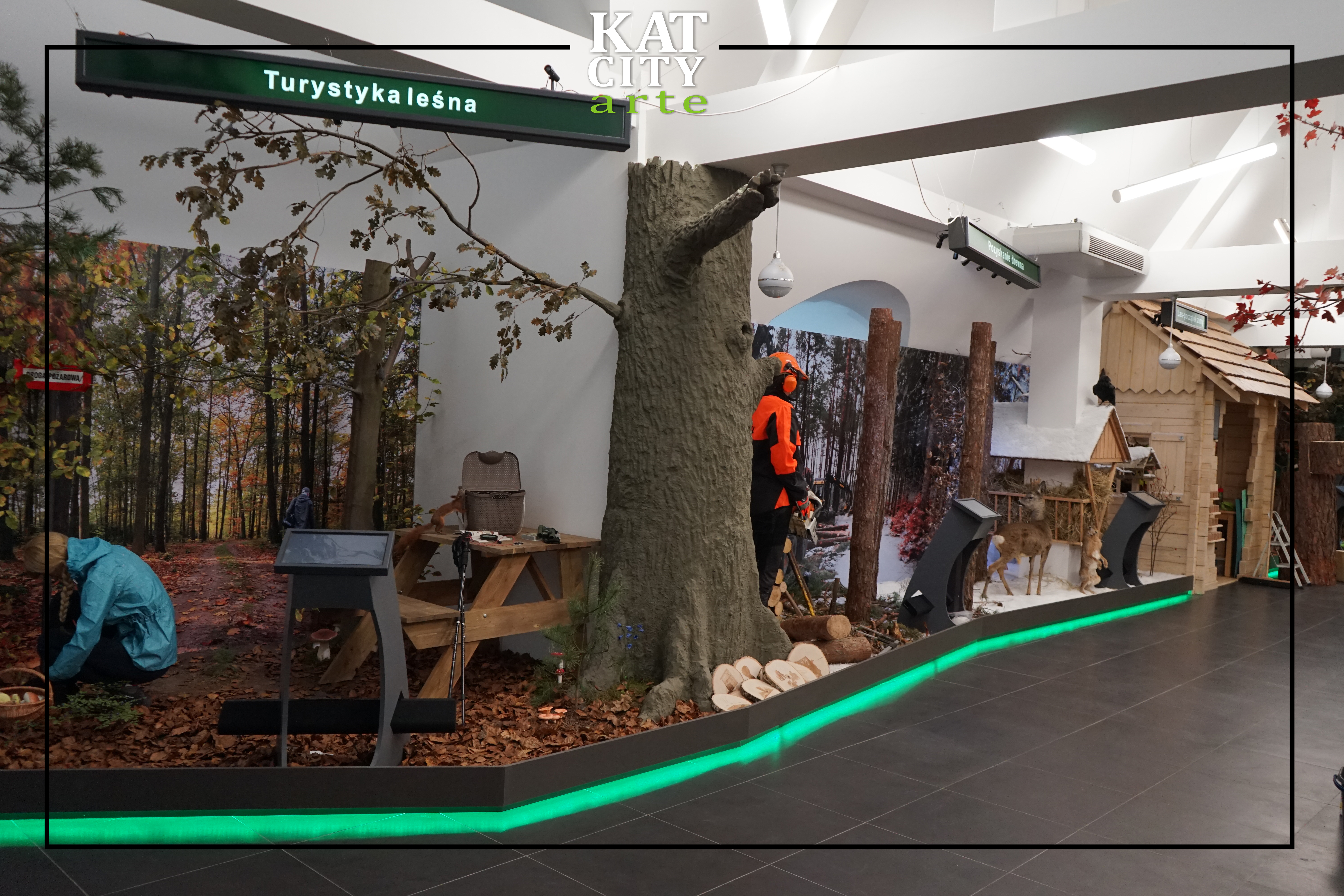 gatunków drzew. Na wystawie zobaczyć można także makietę terenów wokół zabytkowej Masztalarni. Interaktywne mapy LKP i Polski,