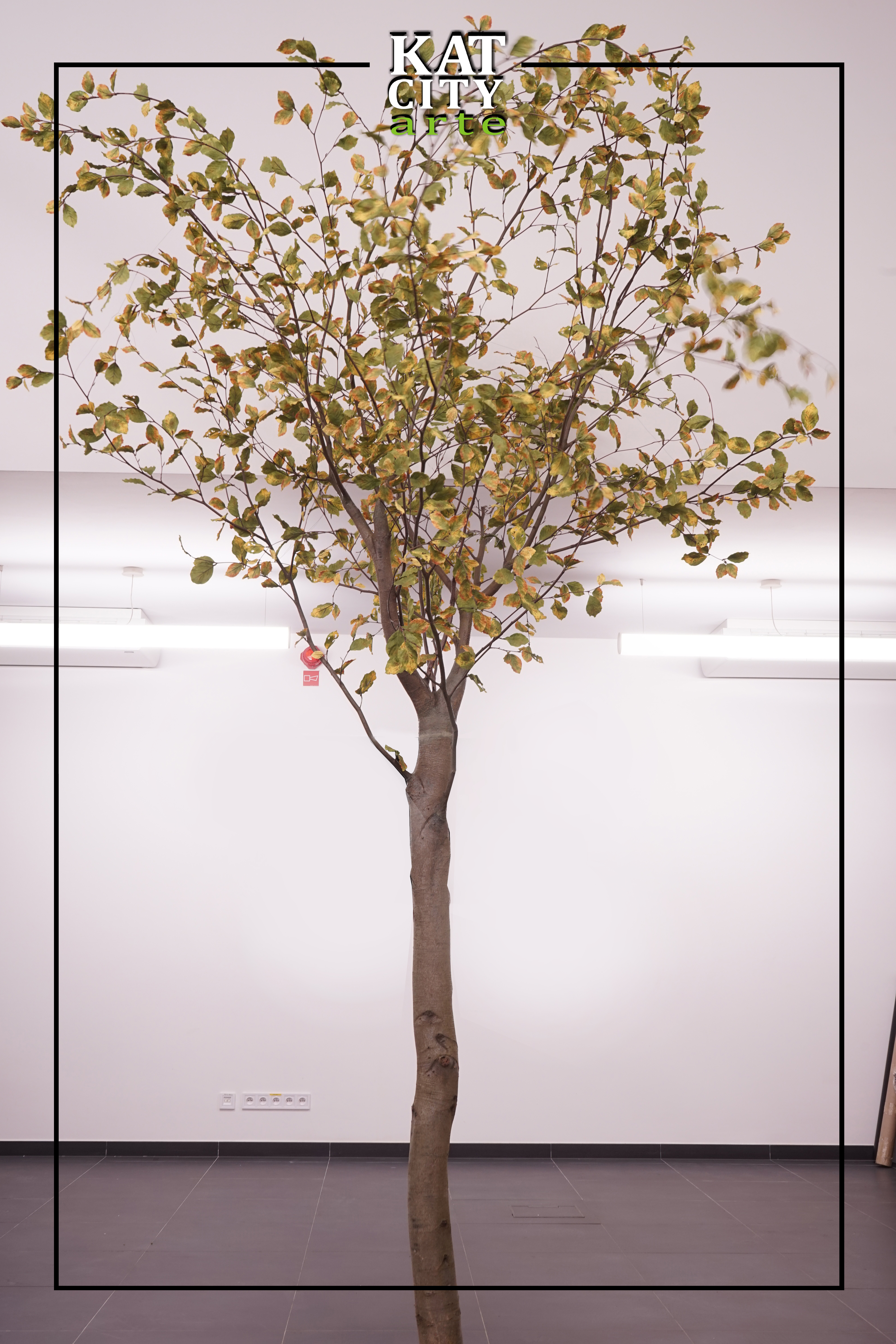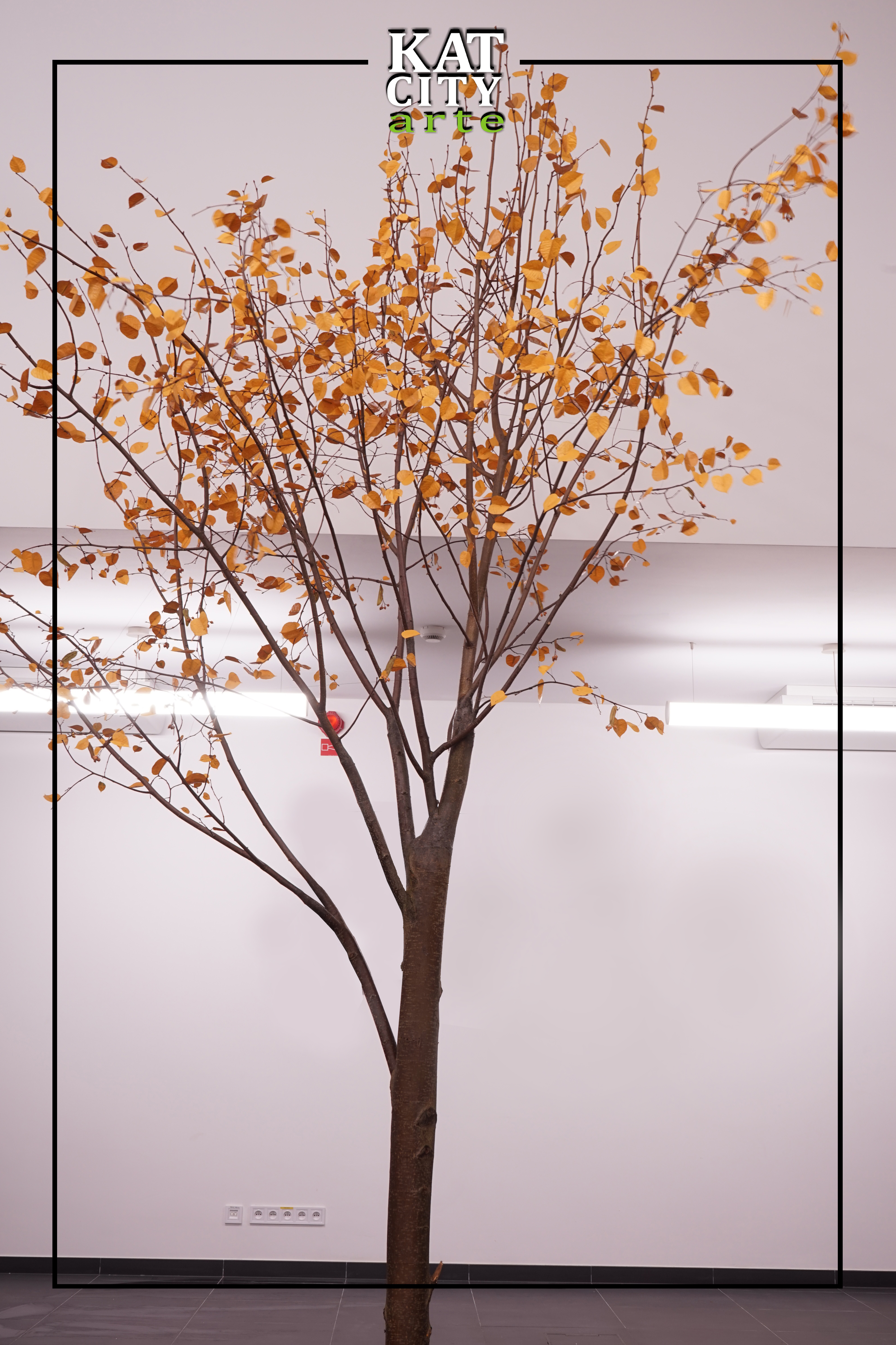 Na środku sali umieszczona została ława, której oparcia i siedzisko wykonane są z zalanych w żywicy kawałków drewna różnych