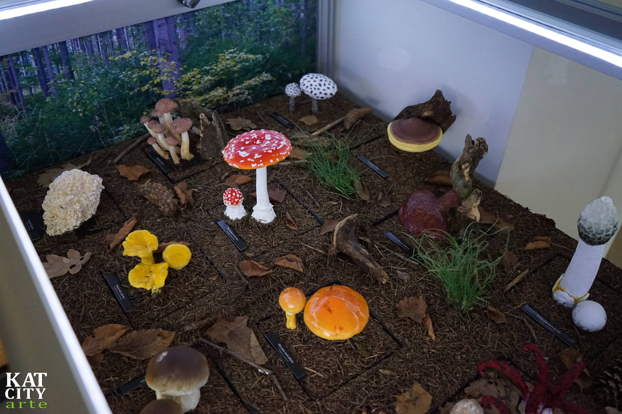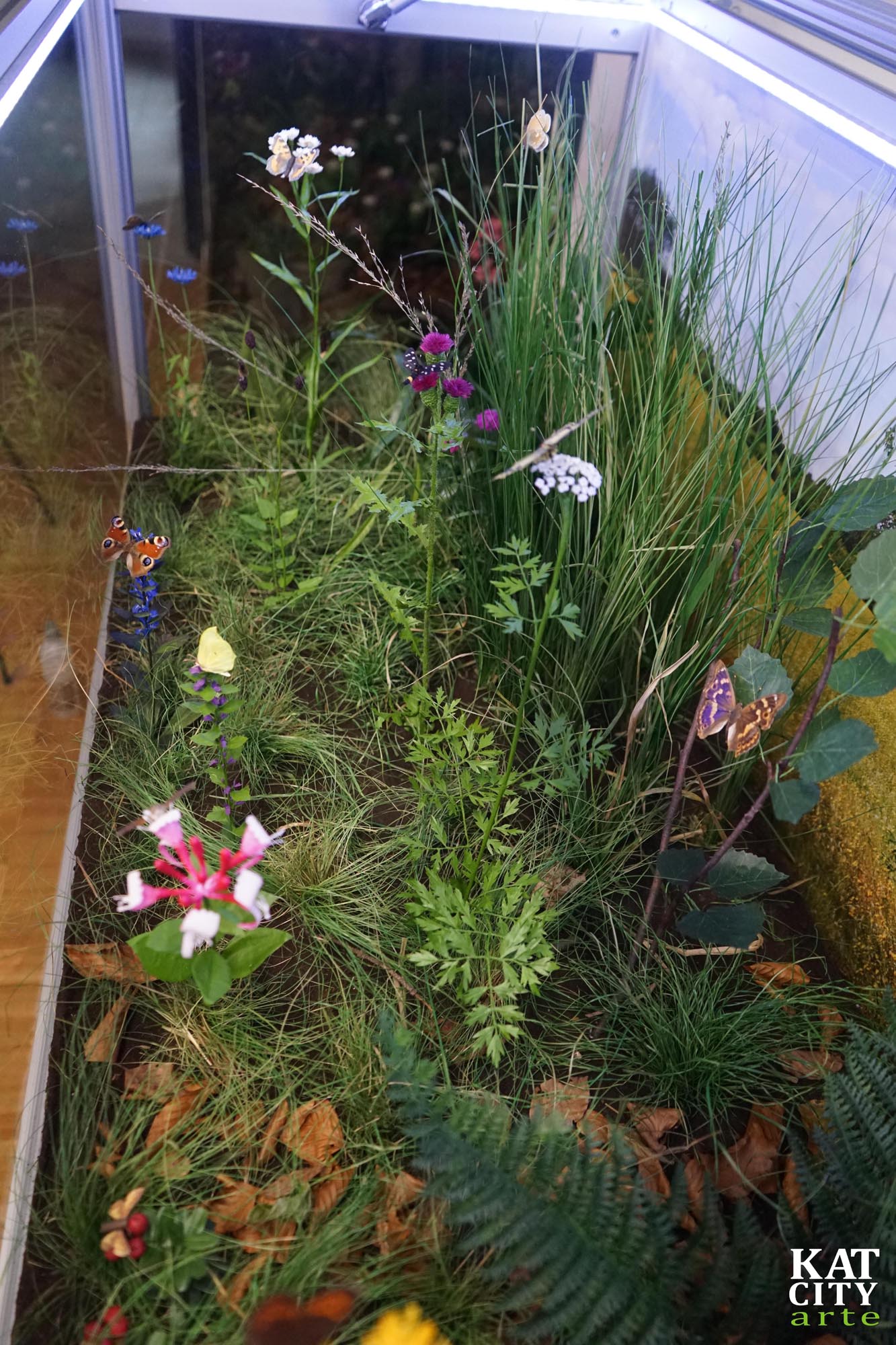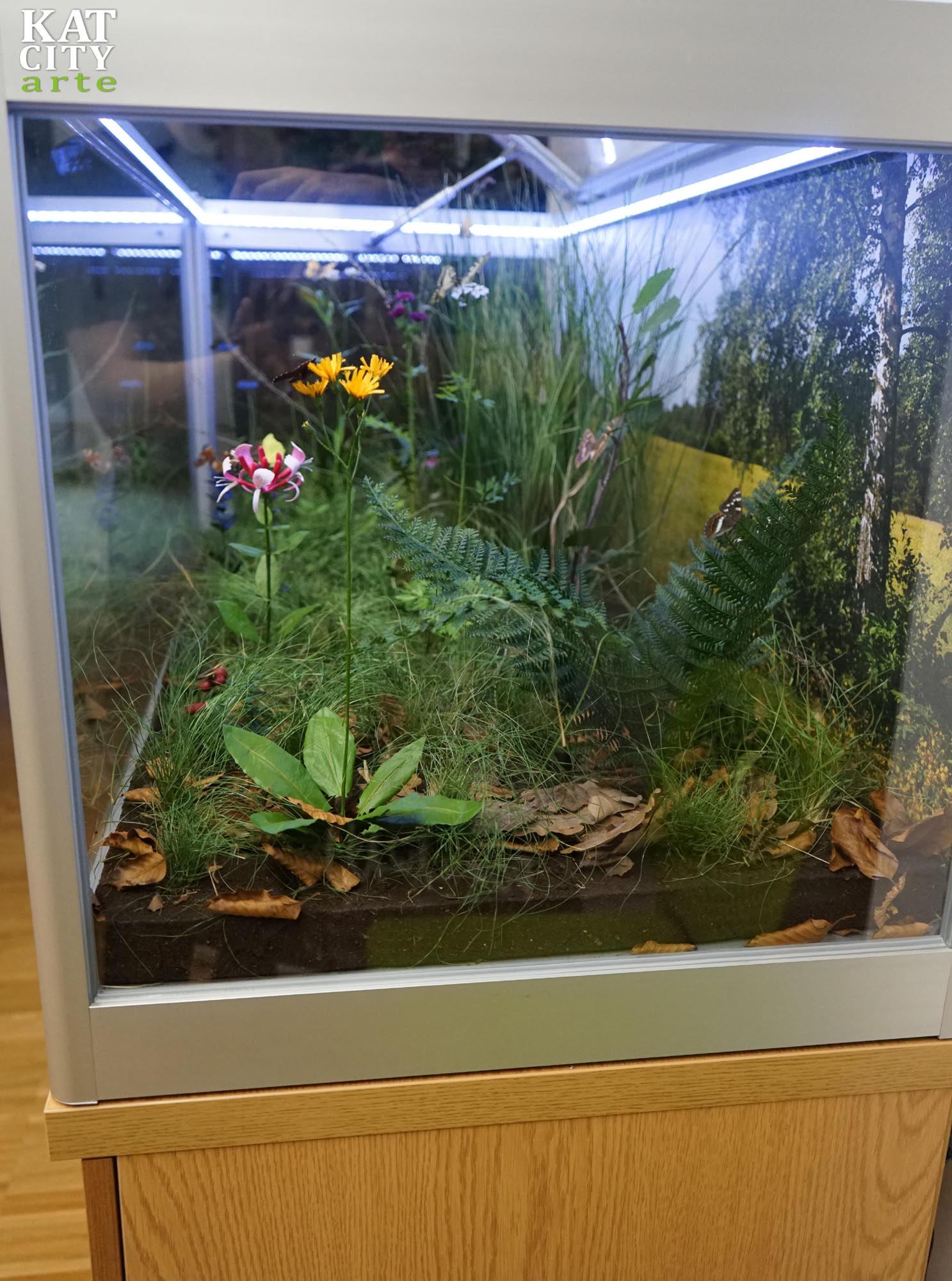 W 3 gablotach pokazaliśmy różne siedliska przyrodnicze. W dwóch kolejnych gablotach umieściliśmy kolejno łąkę