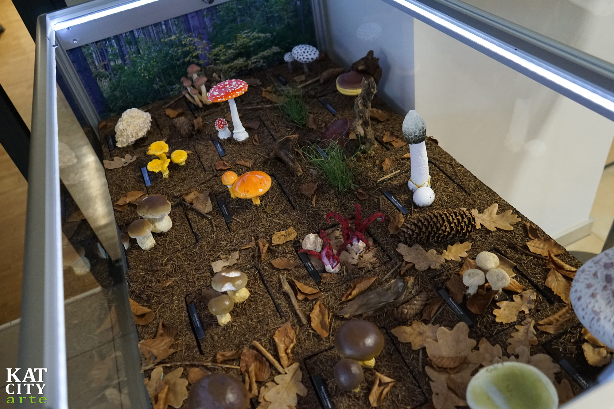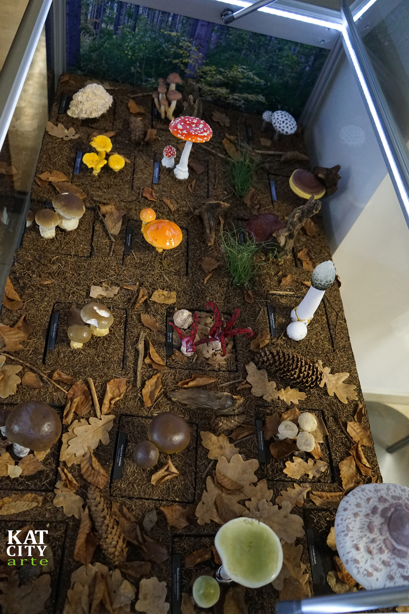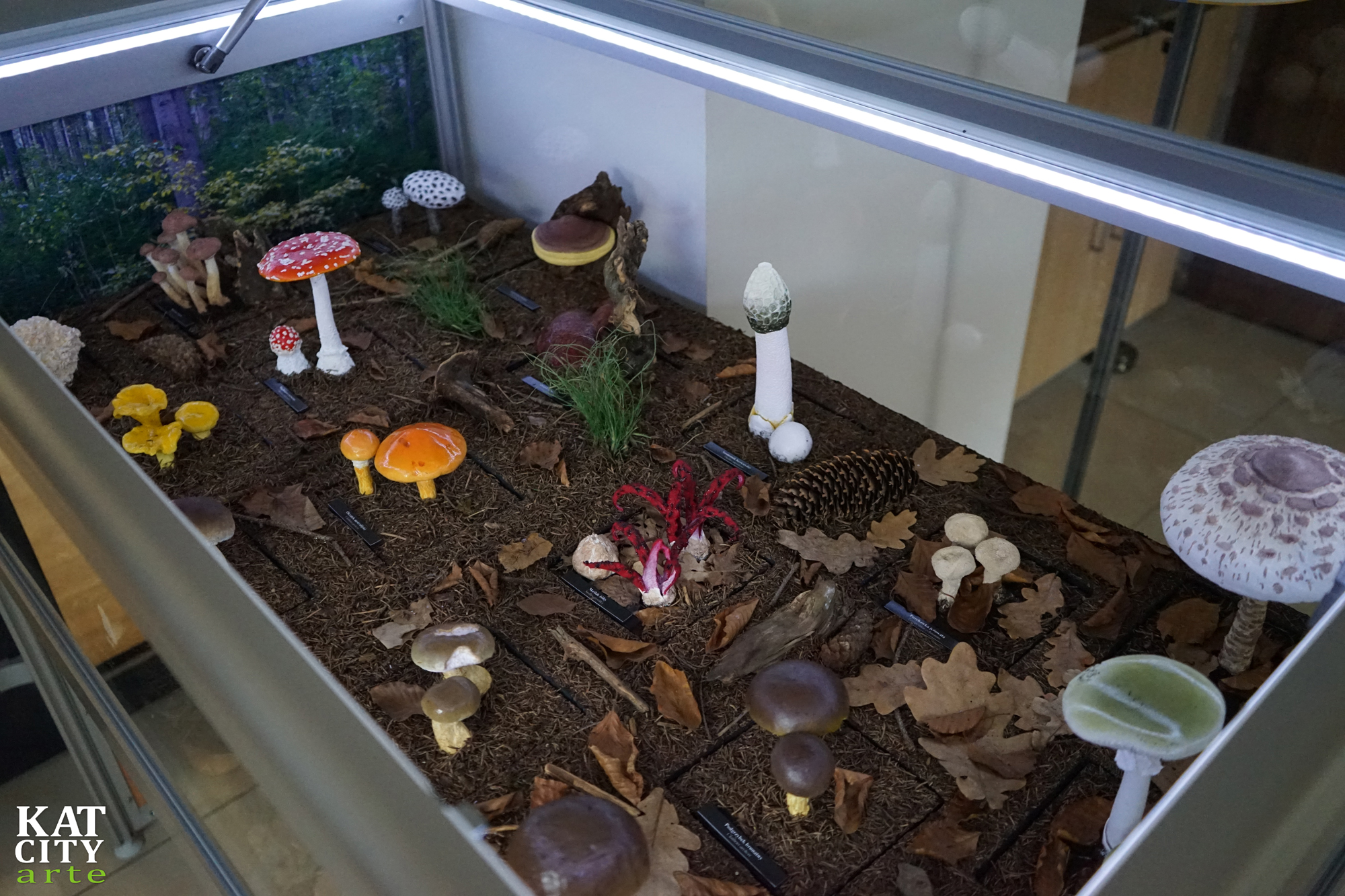 W 3 gablotach pokazaliśmy różne siedliska przyrodnicze. W dwóch kolejnych gablotach umieściliśmy kolejno łąkę