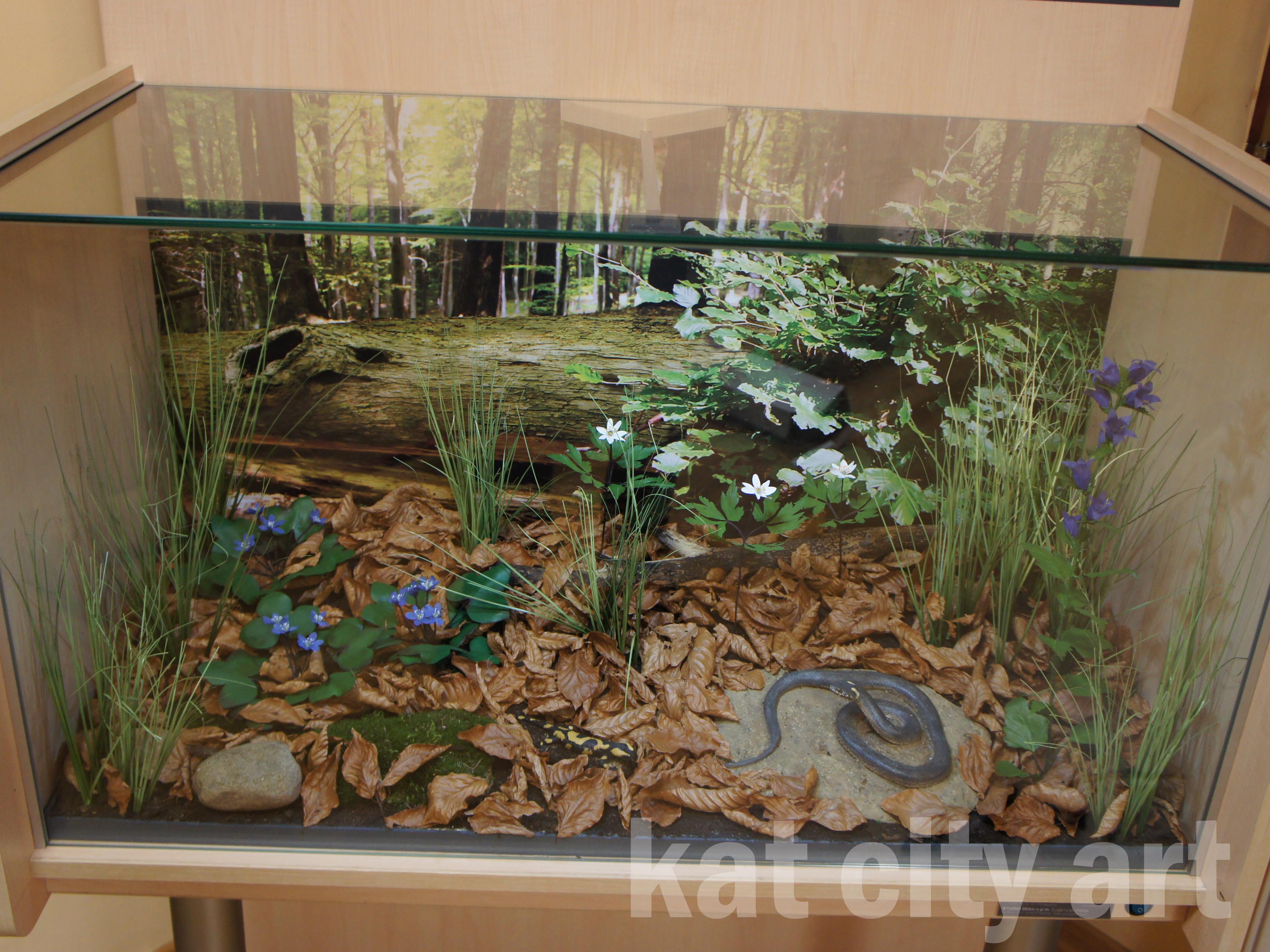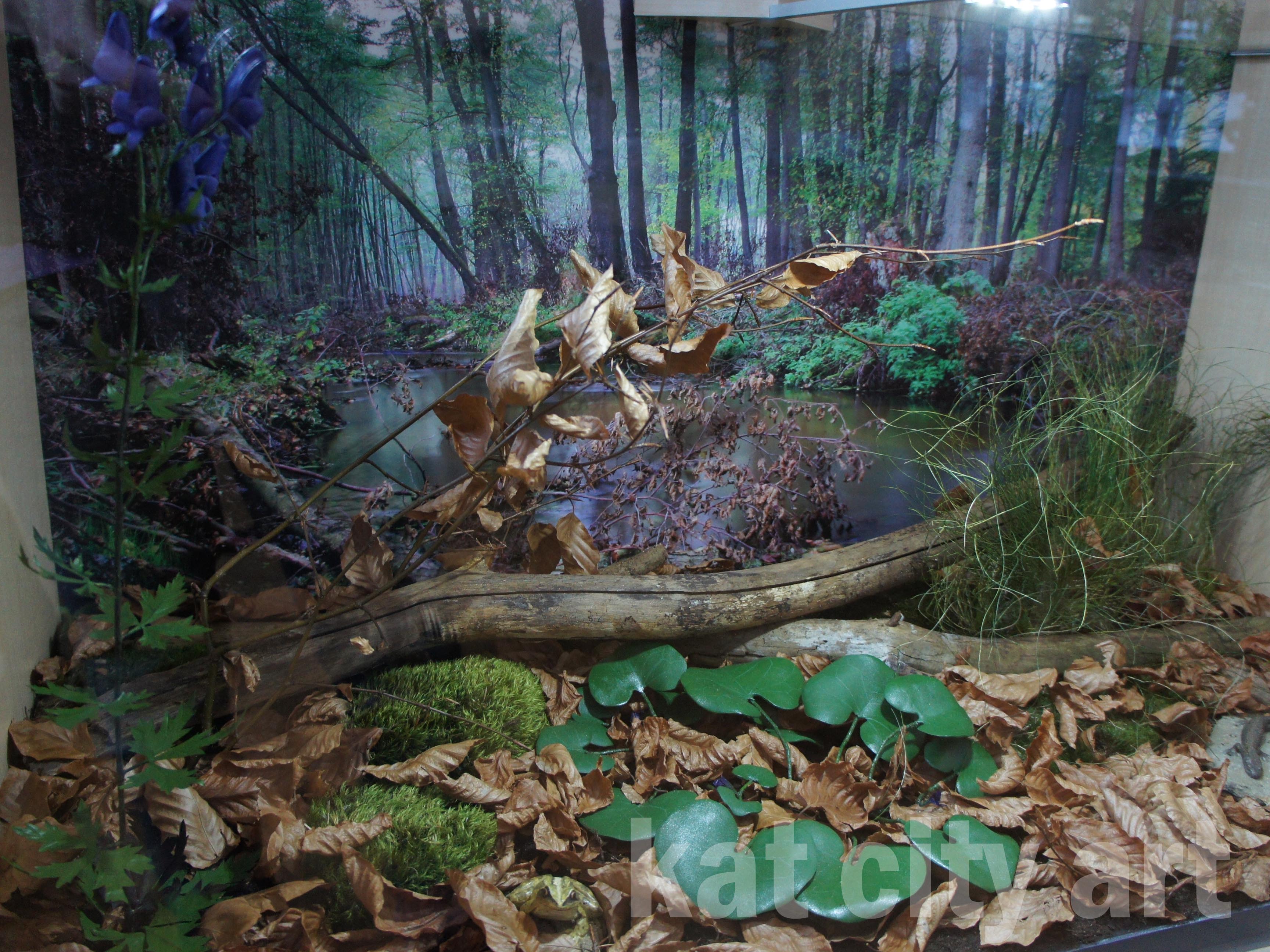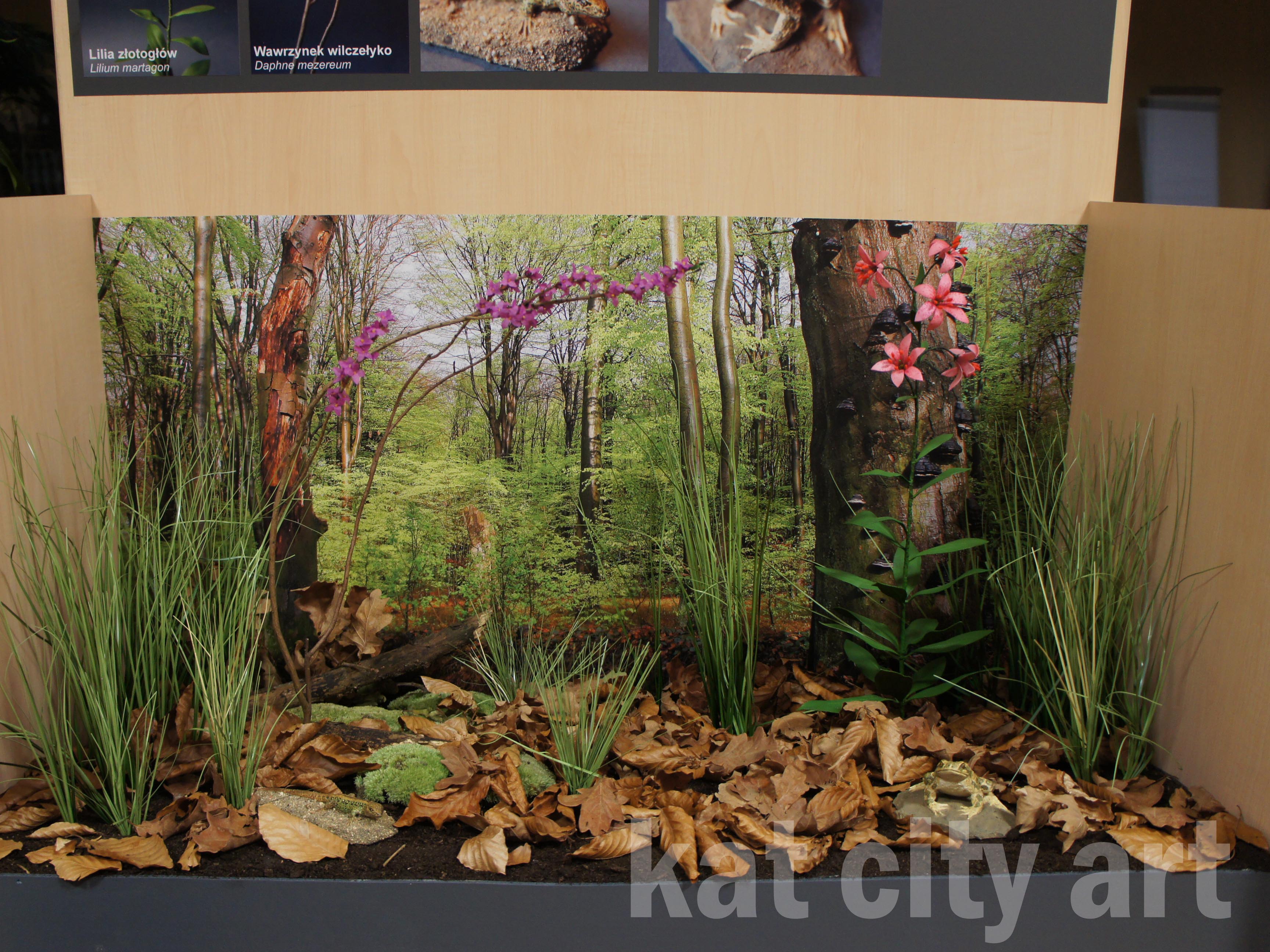 W mini dioramy wbudowane zostały modele roślin i zwierząt ( płazów i gadów)