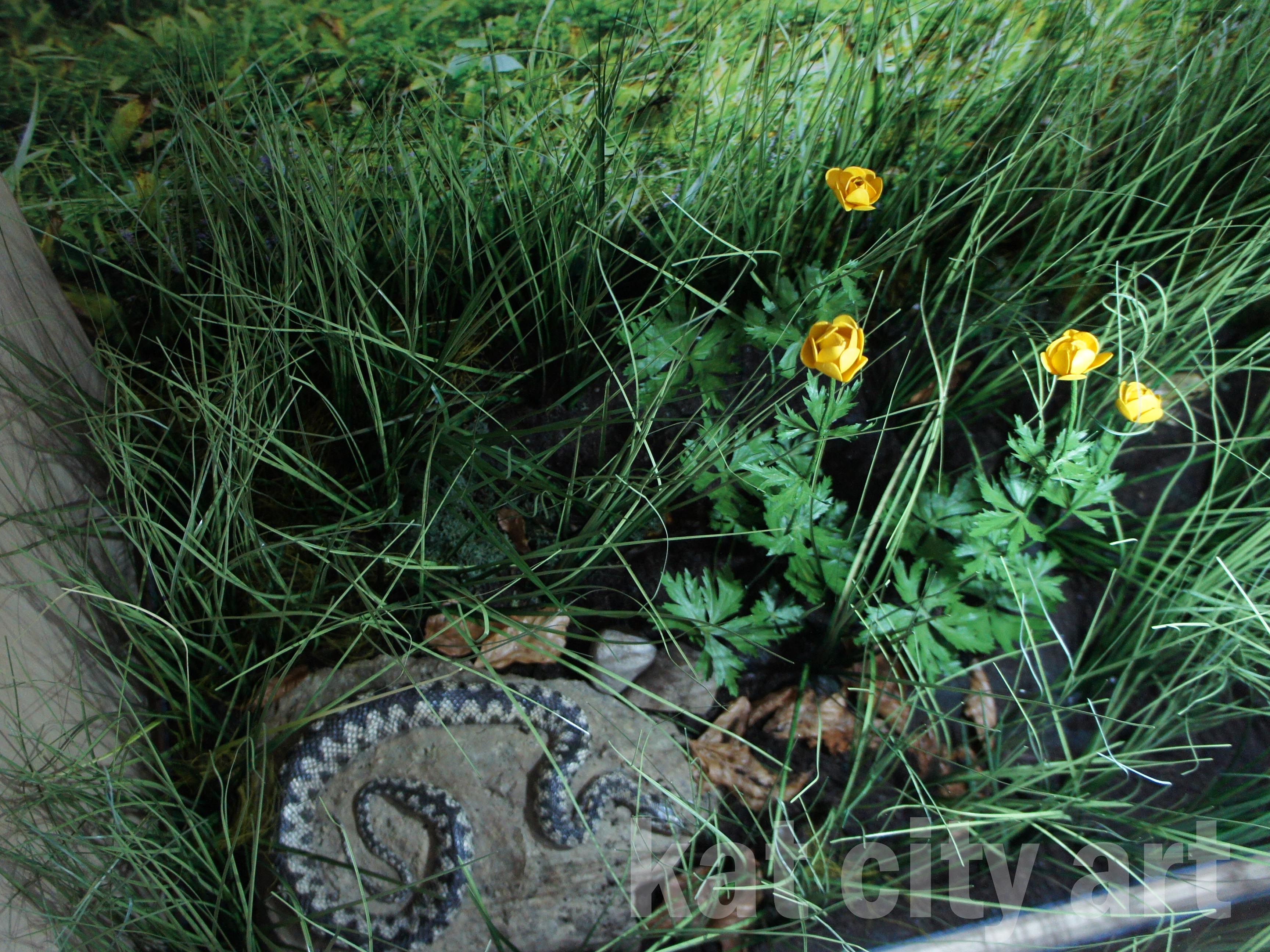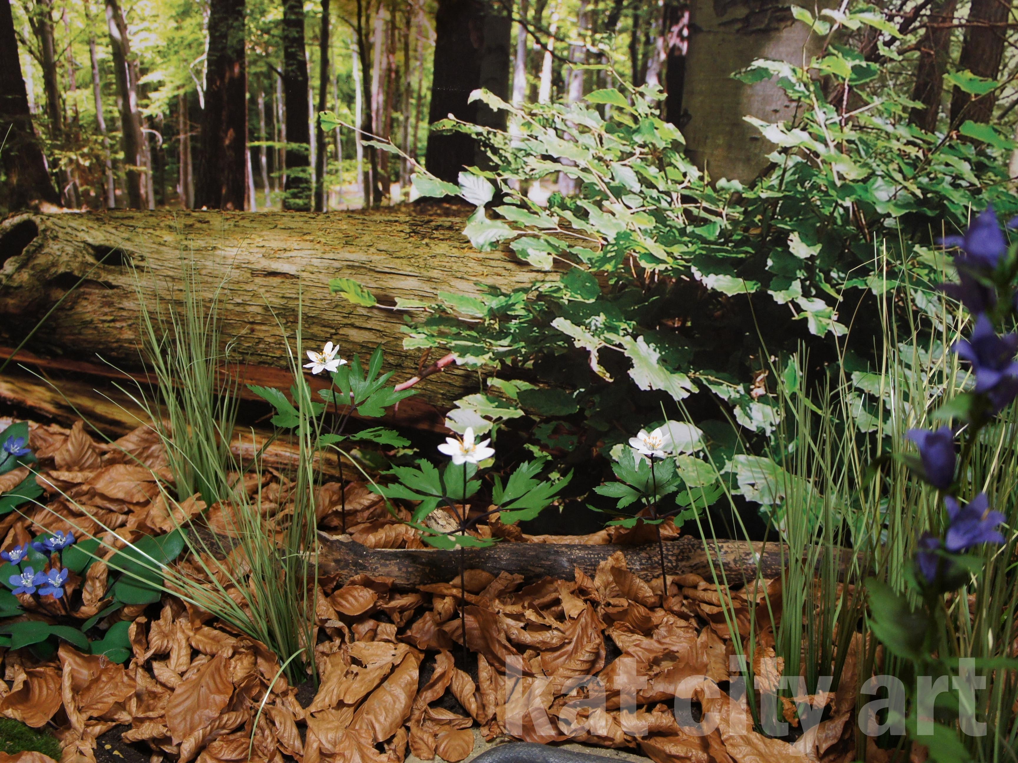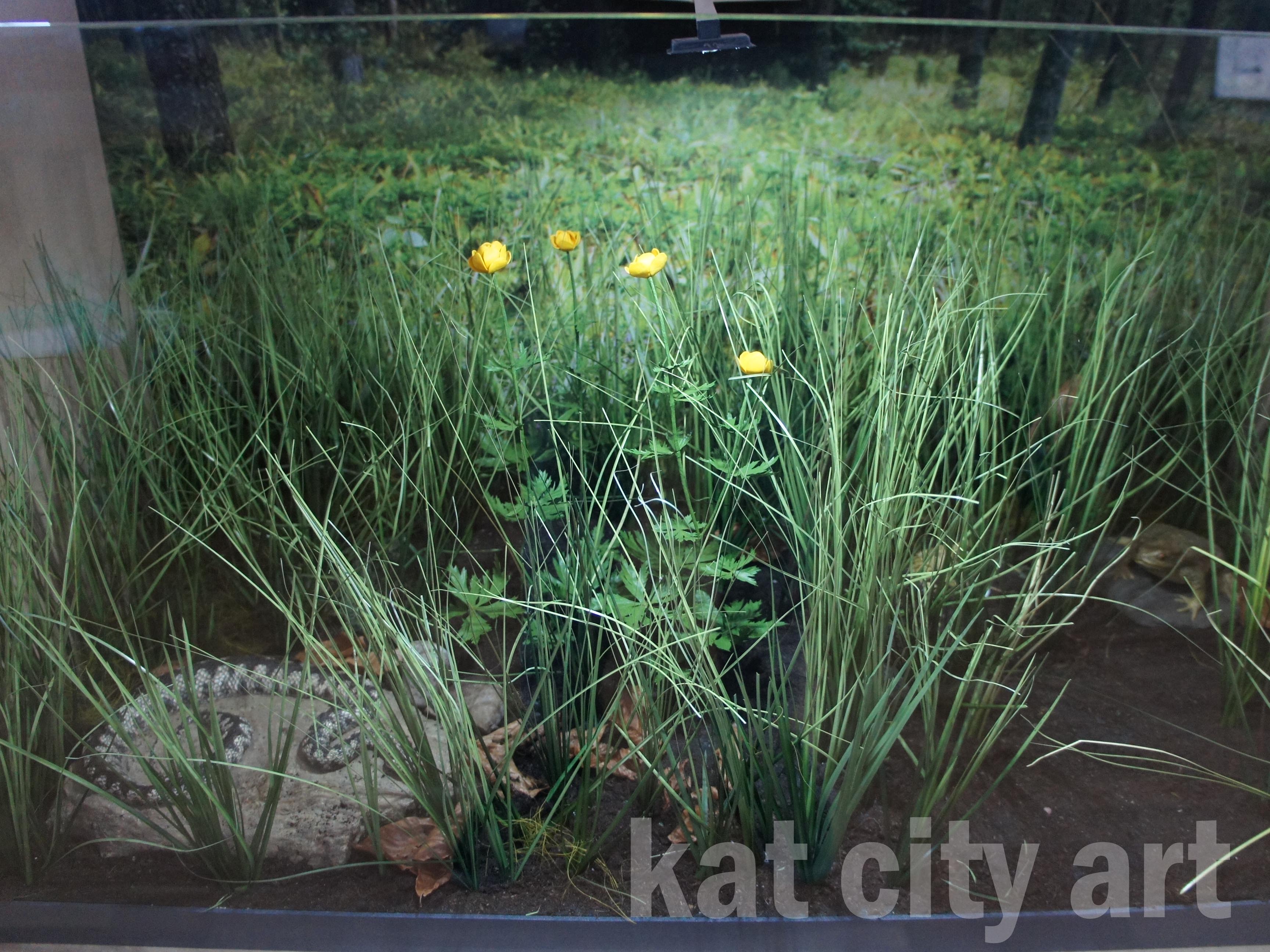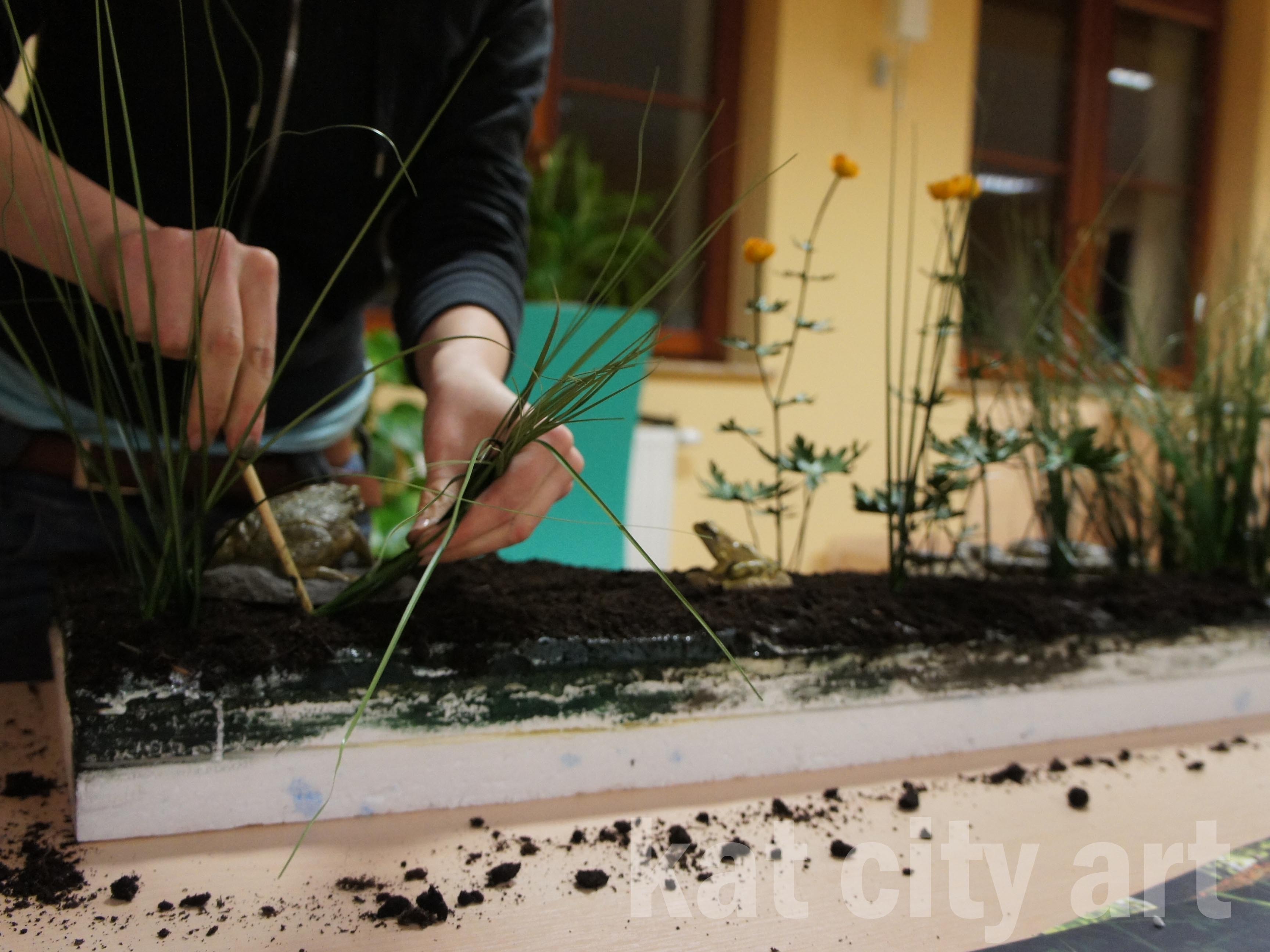 W mini dioramy wbudowane zostały modele roślin i zwierząt ( płazów i gadów)