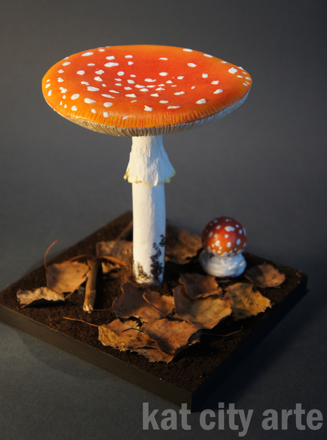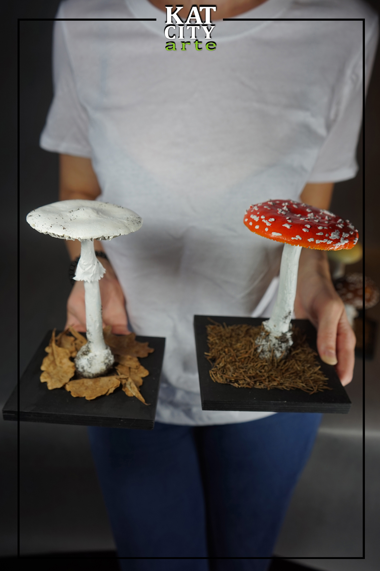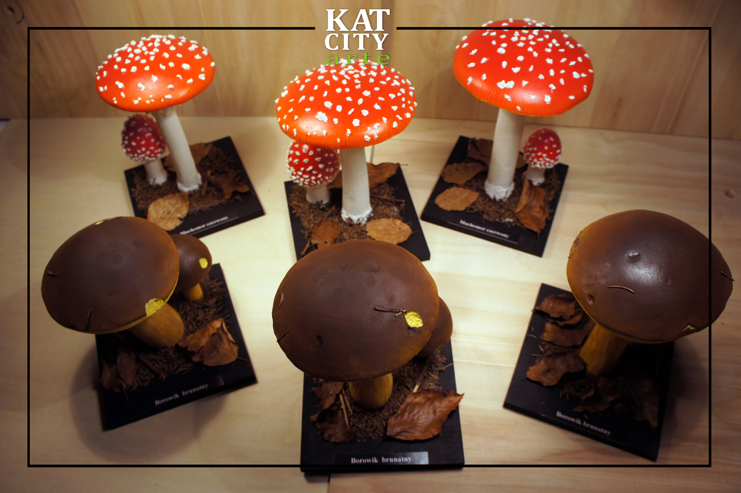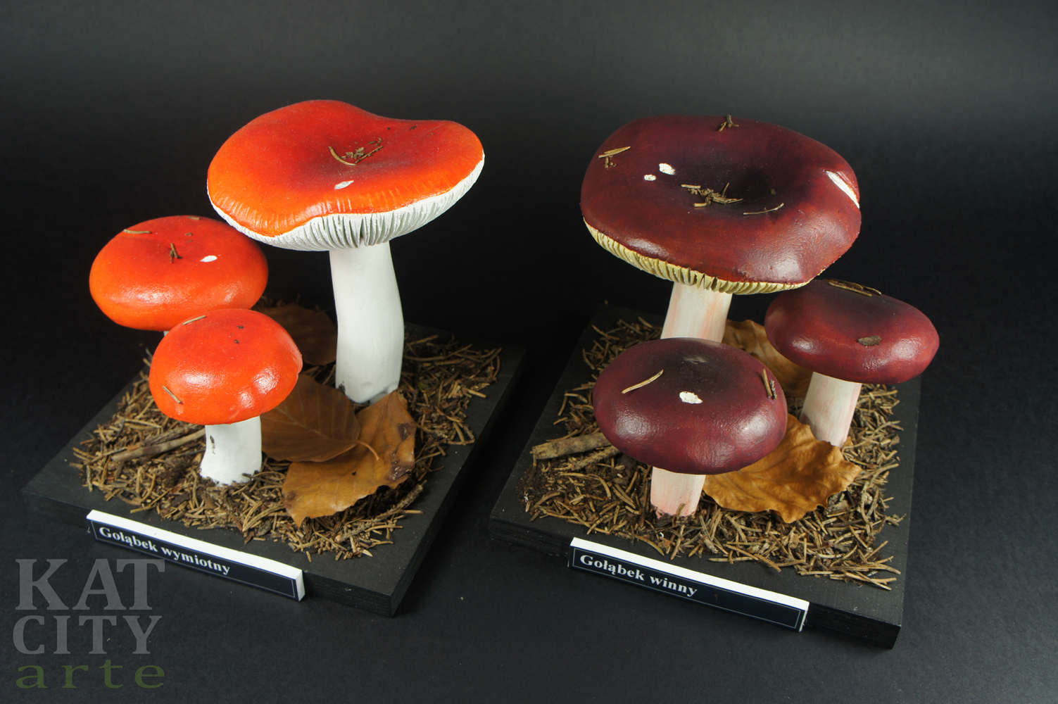 Na potrzeby wykonywanych przez nas ekspozycji, a także indywidualne zamówienia wykonujemy modele grzybów w skali 1:1 i większe. Modele wykonane są z trwałych materiałów odpornych na światło, wodę i działanie czasu. Umożliwia to ich długotrwałe eksponowanie.