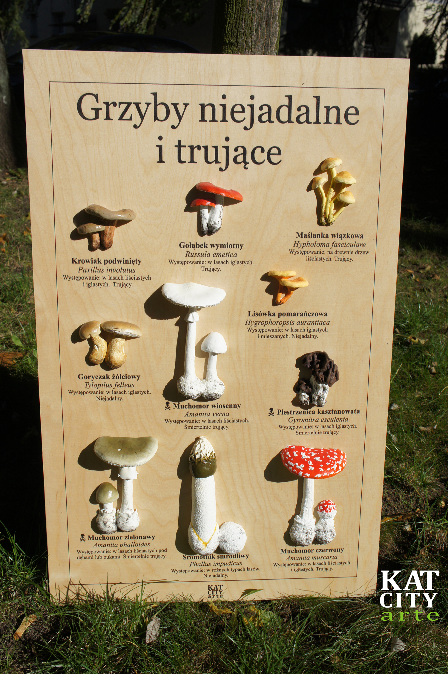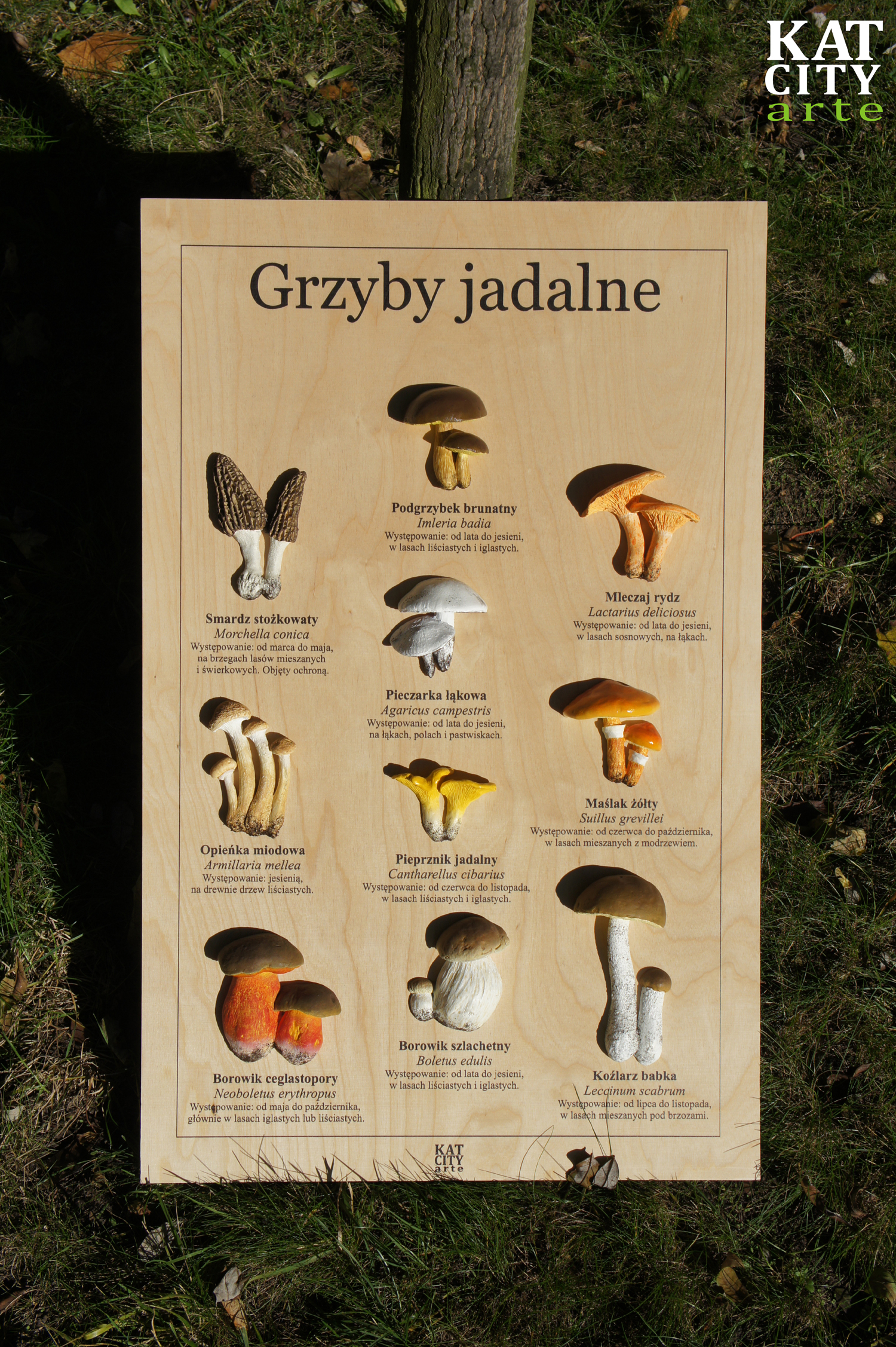 W swojej ofercie posiadamy także edukacyjne/dydaktyczne tablice. Tablice z modelami grzybów: jadalnymi i trującymi wykonane są na sklejce wodoodpornej. Wielkość tablicy to 51x80cm, na zamówienie możemy jednak wykonać tablice o innych wymiarach.